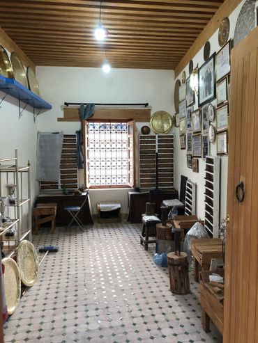 The CRAFT DRAFT Fes studio is located in the medina (old city) within Funduq al-Khrashfiyin, a mid-19th-century caravanserai situated along the famous Fes River, between the two historic bridges. The studio was originally established as Dar Attamania in 1968 by Master Mokhtar El Fasiki, the head of the brass-smith guild. In 2011, it was passed down to his son and apprentice Hamza El Fasiki. Since then, the studio has been known as CRAFT DRAFT.